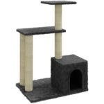 Este árbol para gatos es el refugio perfecto para que tus gatos rasquen, trepen, se posen, se escondan y descansen. Les da a tus gatos la oportunidad de estirarse y hacer ejercicio, especialmente en los fríos meses de invierno cuando están atrapados en el interior. Tus amigos peludos pueden afilar sus garras en los postes de rascado envueltos en cuerda de sisal, que proporciona una salida saludable para sus instintos de rascado. Además, también se regocijarán en perseguirse unos a otros mientras saltan arriba y abajo de este divertido centro de juegos. Cuando hayan disfrutado suficiente tiempo de juego, a tus amiguitos les encantará descansar en las plataformas superiores, donde tienen una mejor vista. Además, también pueden esconderse en la acogedora casa para tomar una siesta, o descansar en el cómodo asiento de felpa. Con todas estas divertidas características, ¡esta rascador se convertirá en el sitio preferido de sus peludos amigos! Color: Gris oscuro Material: Madera de