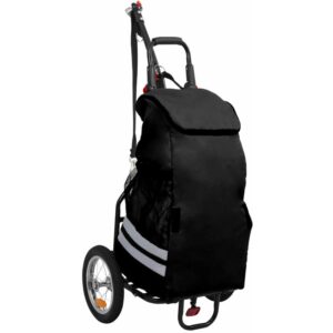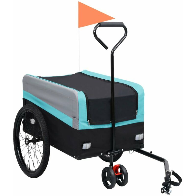 Este versátil remolque de carga para bicicletas/carro de mano, con un cajón de transporte, es perfecto para desplazamientos locales o recorridos de larga distancia. Este remolque de carga para bicicletas tiene una capacidad de carga máxima de 50 kg. Diseñado con un sistema de acoplamiento de bolas para facilitar el enganche a la bicicleta. Equipado con 2 asas en la barra de tiro, este remolque de carga también puede utilizarse como carrito de mano con una capacidad de carga máxima de 70 kg. El soporte plegable permite estacionarlo de forma segura sin tener que preocuparse de que vuelque. Gracias a la construcción de la estructura de acero de alta resistencia con la caja de transporte de plástico resistente a los impactos, este remolque de carga de bicicletas / carrito de mano es muy robusto y duradero. La cubierta de nailon desmontable incluida es impermeable y resistente a la intemperie. Se han añadido reflectores de color de alta visibilidad para mejorar la seguridad. El remolque de