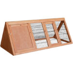 Para garantizar el bienestar de conejos y conejillos de Indias y satisfacer sus necesidades se requiere un espacio grande en el que puedan moverse, así como un refugio seguro que les proteja de enemigos naturales y de la lluvia. La conejera de madera de abeto puede utilizarse como complemento de un gran recinto libre. Esta conejera triangular tiene unas dimensiones de 118 cm x 50 cm x 45 cm. Ofrece un espacio para moverse y un refugio para descansar. Ambas zonas cuentan con una puerta grande que permite limpiar la conejera de forma sencilla y conectarla a un recinto exterior. Para ello, coloque la conejera en tu recinto exterior protegido y fije la puerta en posición abierta. Esto te permite tener una conejera con mucho espacio y un área de descanso. Aviso: Los conejos enanos, por ejemplo, son animales sociales que se mantienen en grupos de al menos tres. Este grupo necesita al menos 6 metros cuadrados de superficie más una caseta independiente por animal. Nuestro consejo: Nuestro