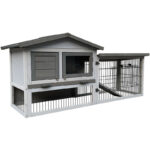 Wiltec – Gallinero de madera gris claro 144×52,5×68,5cm, nidos y corral, bandeja extraíble para limpieza