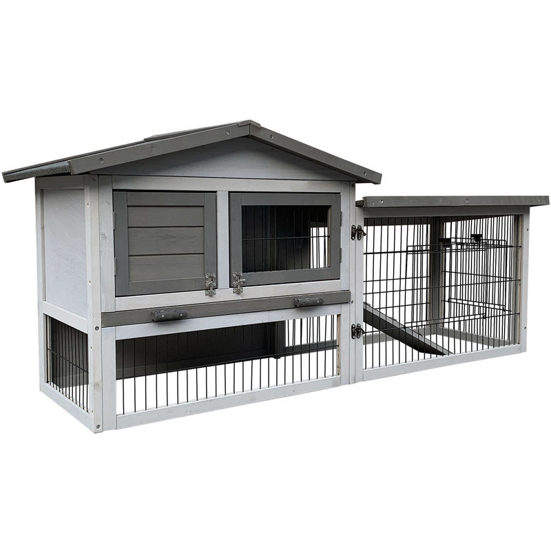 Para garantizar el bienestar de las aves de corral y satisfacer sus necesidades se requiere un espacio grande en el que puedan moverse, así como un refugio seguro que las proteja de enemigos naturales y de la lluvia. Este práctico gallinero tiene dos áreas interconectadas, combinando así una caseta protegida para dormir con un corral. Puede utilizarse como complemento de un gran recinto o un amplio gallinero para optimizar el cuidado de tus aves. Las dimensiones del gallinero son de 144 x 52,5 x 68,5 cm. La casa tiene una ventana y una puerta en la parte delantera. Ambos pueden abrirse si es necesario. Esto hace que el acceso al interior sea muy fácil. El fondo de la caseta contiene una bandeja galvanizada (bandeja de excrementos) que pueda extraerse para facilitar la limpieza. El gallinero es de madera de alta calidad y está pintado en dos tonos de gris. El color no solo proporciona un aspecto moderno, sino que también protege la madera de las inclemencias del tiempo. La ventana de