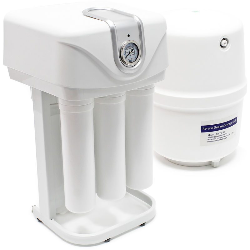 El filtro de agua NW-PRG03 ha sido especialmente desarrollado para que el agua potable ligeramente contaminada se pueda consumir de forma rápida y fácil. Este filtro de agua es muy económico y su instalación y manejo muy sencillos. Su calidad y rendimiento se corresponden con los de otros sistemas de filtración comercializados que son, sin embargo, mucho más caros. Dependiendo de los cartuchos filtrantes que se utilicen, el filtro de agua es la solución para retener casi cualquier impureza. Este sistema para el filtrado de agua se envía con un cartucho filtrante para sedimentos de 5 µ que elimina de forma fiable la arena, el óxido, las algas y otras partículas en suspensión del agua. La segunda etapa de filtrado consiste en un cartucho filtrante de carbón activado granulado que limpia el agua potable de ozonos, pesticidas, corrosión, partículas de cal suspendidas y cloro, reduciendo, además, la concentración de metales pesados como plomo y cobre. La tercera etapa de filtrado está